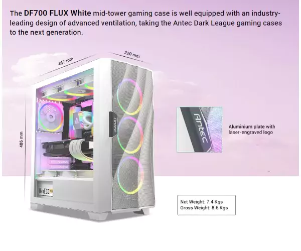 מארז לבן ANTEC DF700 FLUX Tempered Glass RGB Mid tower Black Case